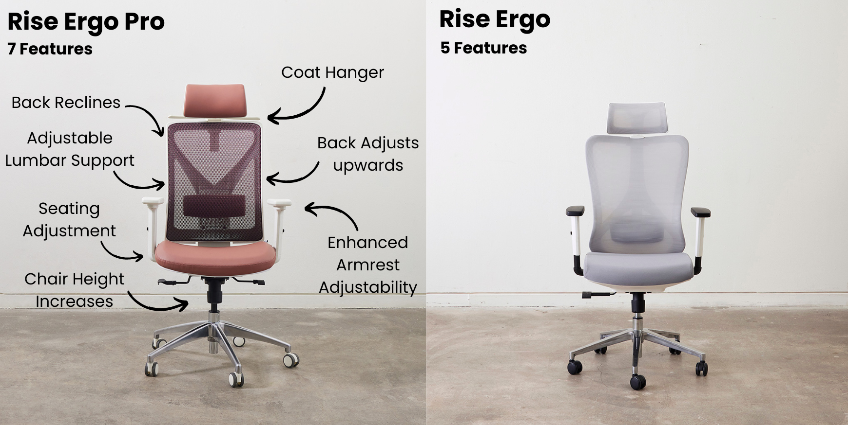 Elevate Your Seating Experience: Pro vs Regular Ergonomic Chairs compared. Slide to reveal features.
