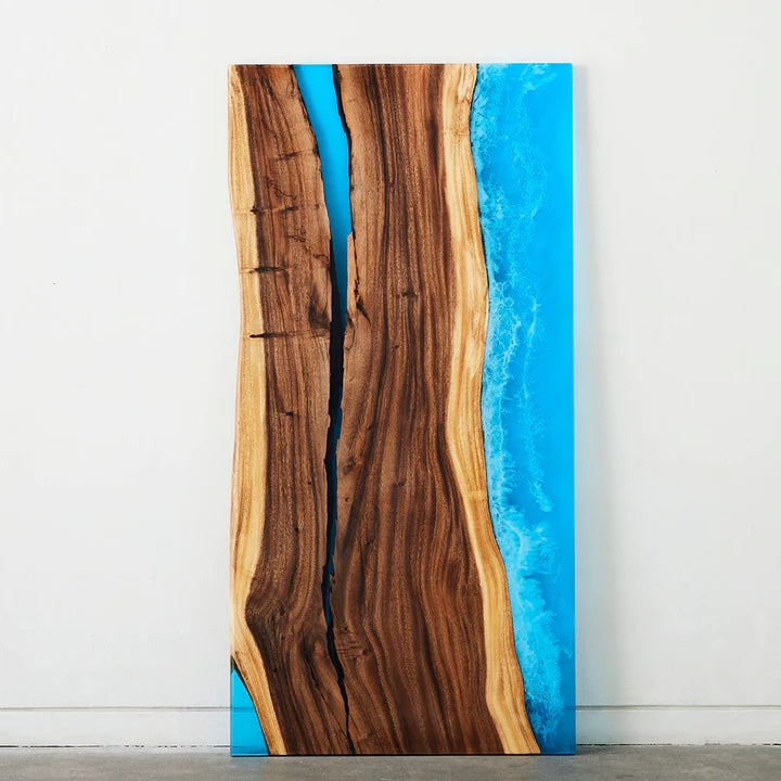 - Live edge on wood side, straight edge on resin side