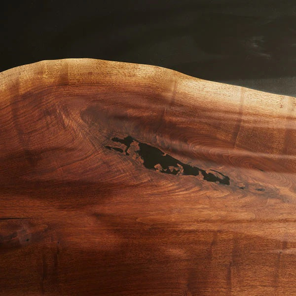 Our live edge epoxy desk is made from 100% solid walnut. The natural edge of the wood is incorporated in the design such that no two are the same.
